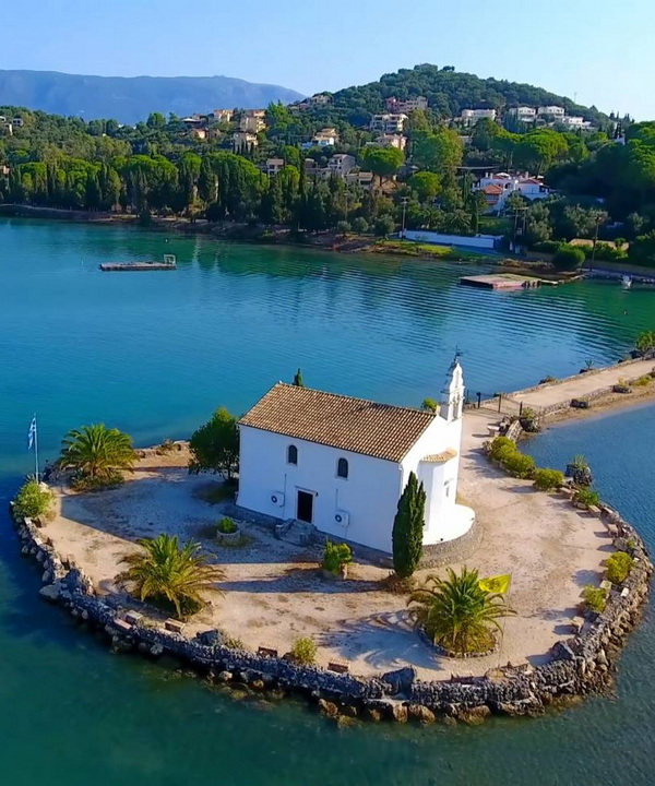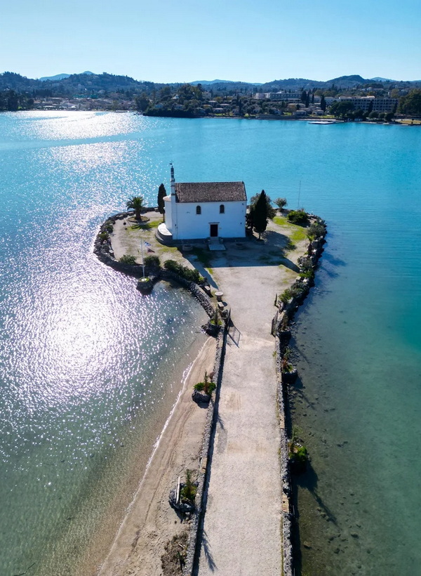 Today an environment of beauty and tranquility has been created where visitors can relax on the stone benches and enjoy the church and the unique scenery of the Bay of Gouvia.